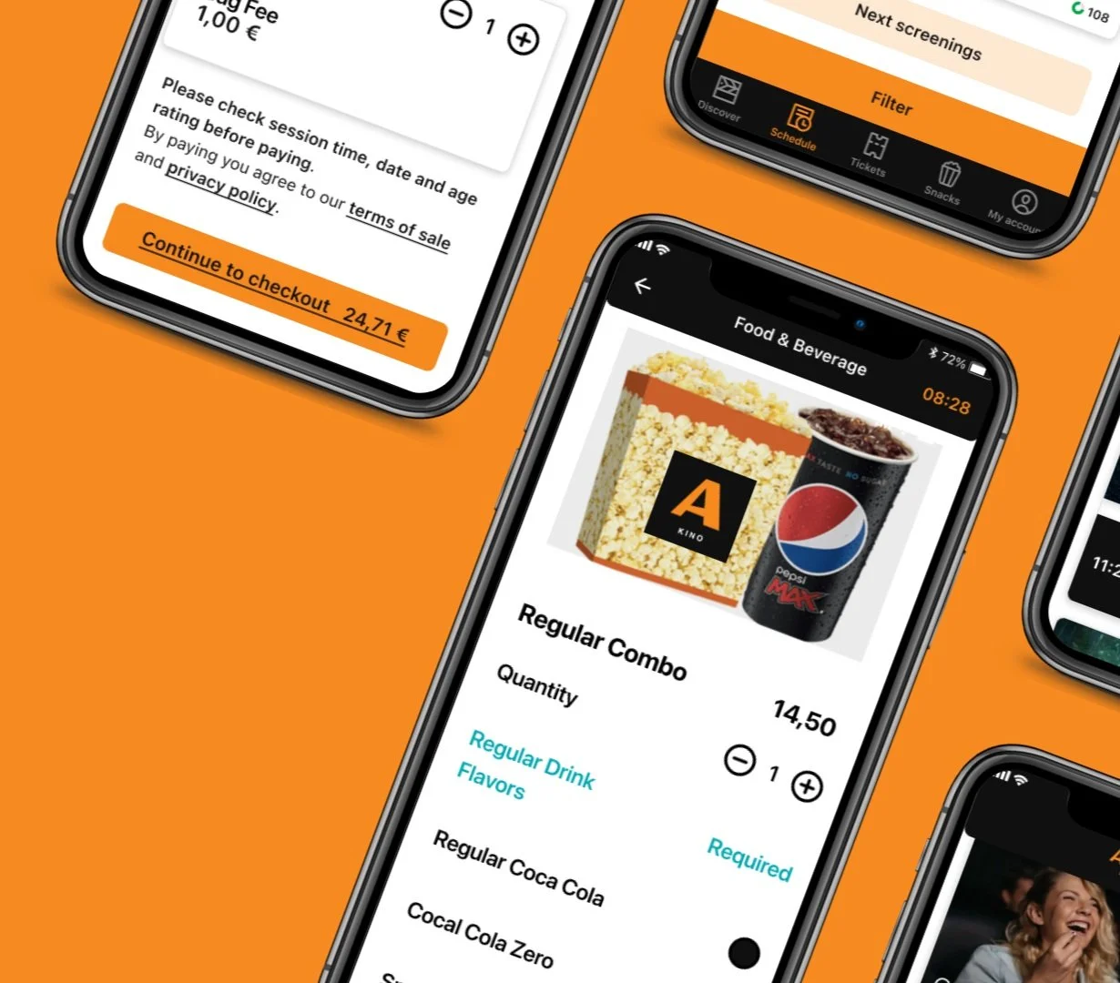 Cinema Food & Beverage Pre-Order App Feature; Transforming the movie experience for movie lovers.